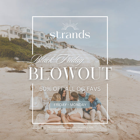 Strands Co. was inspired by weekends spent on the sands of our favorite beach, Strands Beach in Dana Point, California, as a newly married couple with a colorful mix of mismatched chairs, umbrellas, and towels in tow.As our family grew, so did our need for gear that was not only cohesive and stylish but also easy to pack, quick to set up, and versatile enough to go beyond the beach. That’s how Strands Co. came to life offering thoughtfully designed umbrellas, chairs, towels, and accessories that combine style, functionality, and effortless convenience for every kind of outdoor moment.From coastal escapes to game-day sidelines, wherever the day takes you, Strands Co. has you covered!