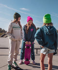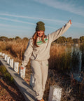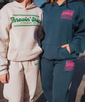 The checked out sweatpants are the perfect mix of cozy and classic Strands style. Made from soft heather sand fleece and finished with our coastal green throwing’ Shade graphic on the hip, these joggers deliver everyday comfort with a subtle retro nod. Relaxed, warm, and made to pair effortlessly with the matching sweatshirt.